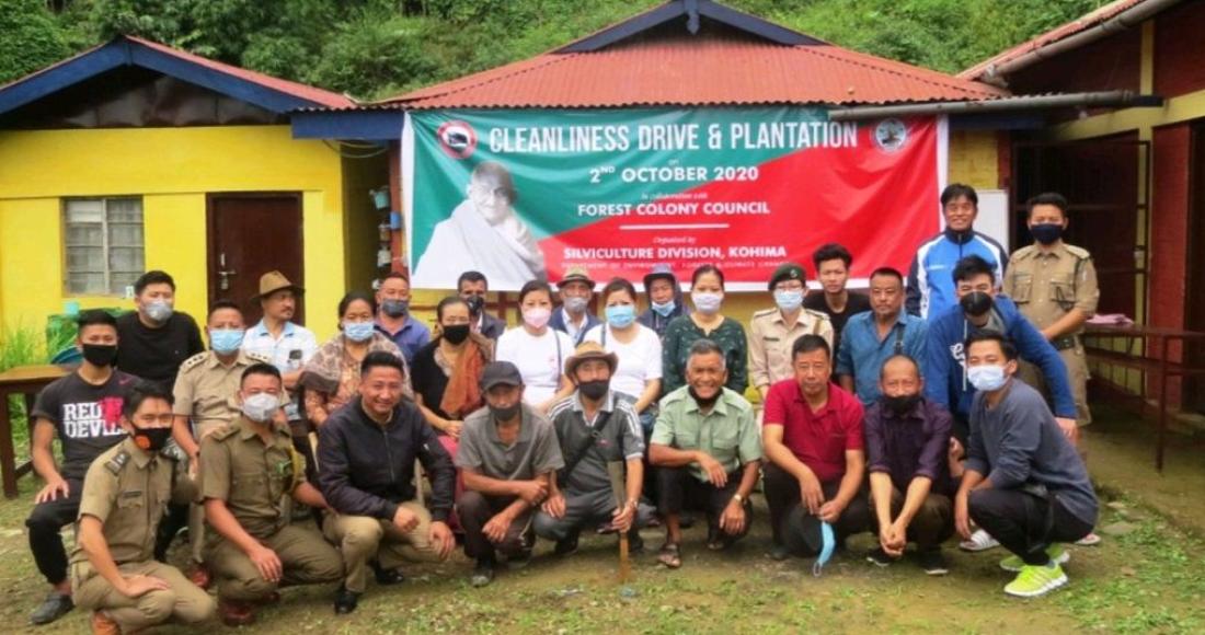 A short formal program preceded the social work where the State Silviculturist Lhinghoikim Touthang IFS welcomed the participants. RFO Grace Kikon briefed on the significance of teachings of Gandhi. The Forest Colony Chairman Peter Rengma spoke about the importance of cleanliness both within and outside the household. He also shared his experiences on undertaking plantation and nurturing the plants. Vote of thanks was pronounced by Sunep L Imsong Fr-I.
