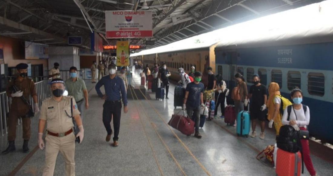The special train from Bangalore arrived at Dimapur Railway Station on 9th July 2020 around 8:20 am carrying 290 Naga returnees comprising of 137 from Dimapur and Peren district, Mon-37, Tuensang-19, Longleng-17, Kiphiri-18, Phek-4, Zunheboto-24, Mokukchung-4, Wokha-16 and Kohima-14.