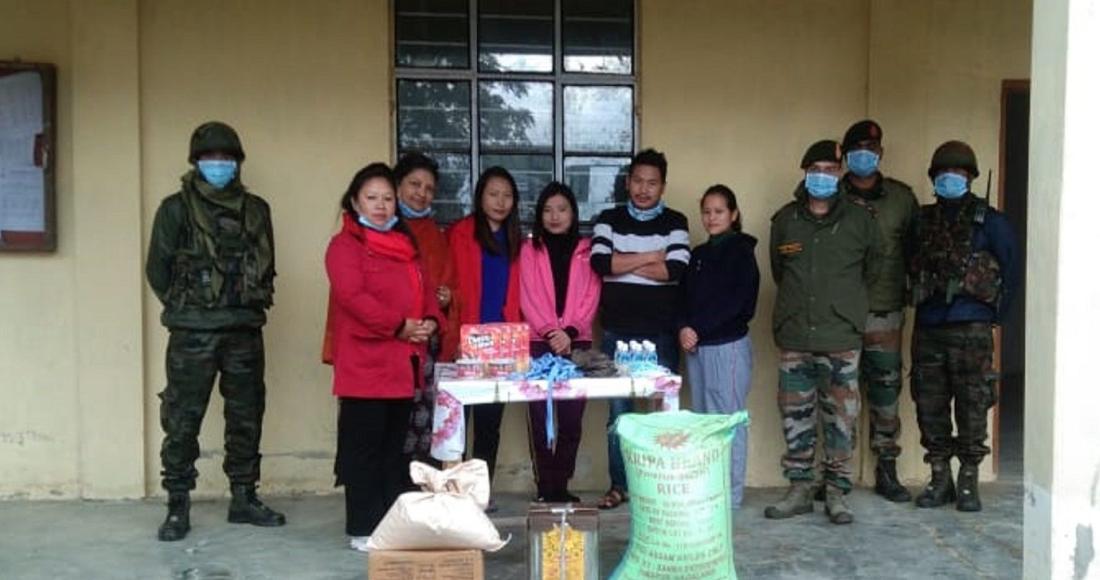 45 AR led by Col. Amit Thakur Commandant accompanied by his lady wife visited Shamator College and donated masks, hand sanitizers, M. Oil, Rice 50 Kg and other daily use, to the standard staff.