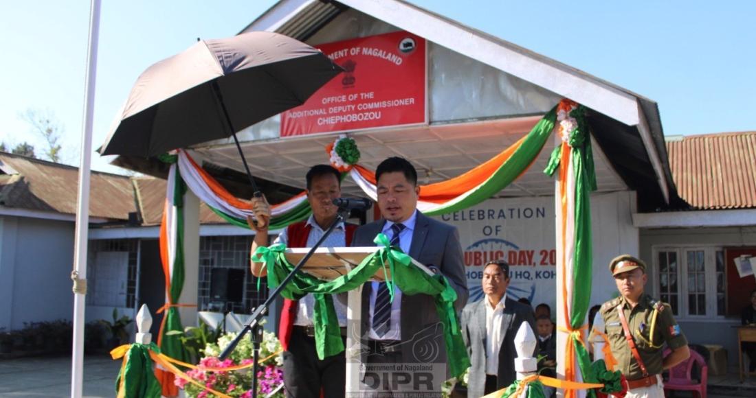 Additional Deputy Commissioner of Chiephobozou, Alemyapang Longchar unfurled the National flag and took the Rashtriya Saluted from 10 IRB Zhadima, followed by Singing of the National Anthem from GHSS Chiechama. The ADC also read out the Republic Day message, and handed over Soil Health Cards distributed by the Department Of Soil and Water Conservation to 14 villages under Chiephobozou Sub-Division under Kohima district.