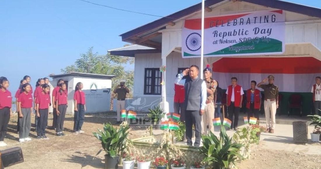 SDO (C) Noksen, C. Phuniang taking the Rashtriya Salute during the 77th Republic Day celebration 2026 at Noksen, Tuensang on 26th January 2026.