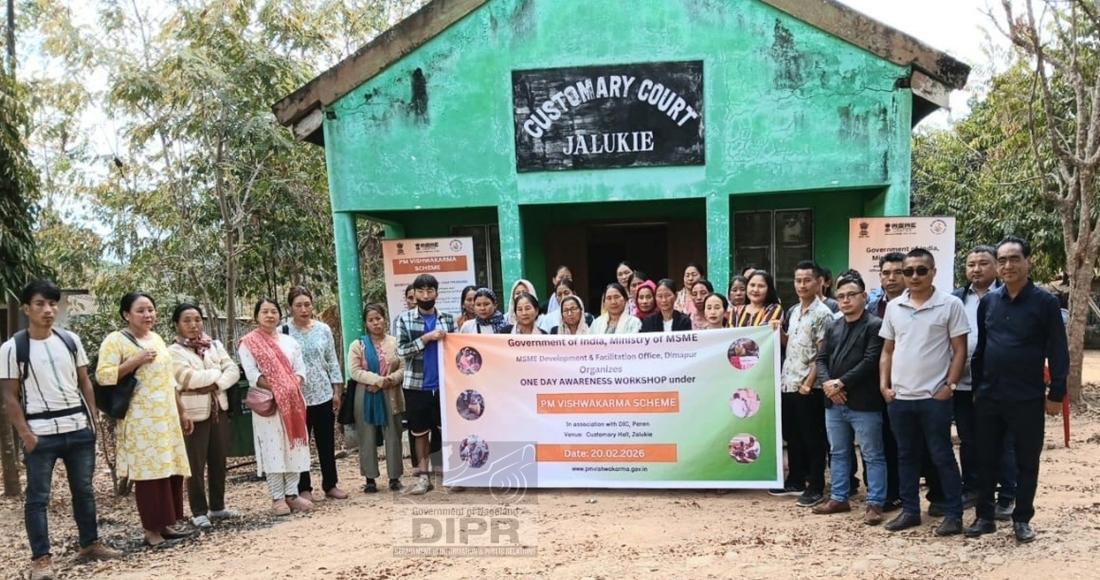 An Awareness Workshop on PM Vishwakarma was organised by office of the District Industries Centre (DIC), Peren at Dobashi Customary Court, ADC Office, Jalukie on 20th February 2026. The workshop was aimed to enhance awareness and capacity among artisans and beneficiaries on entrepreneurship, marketing, digital formalisation and financial literacy.