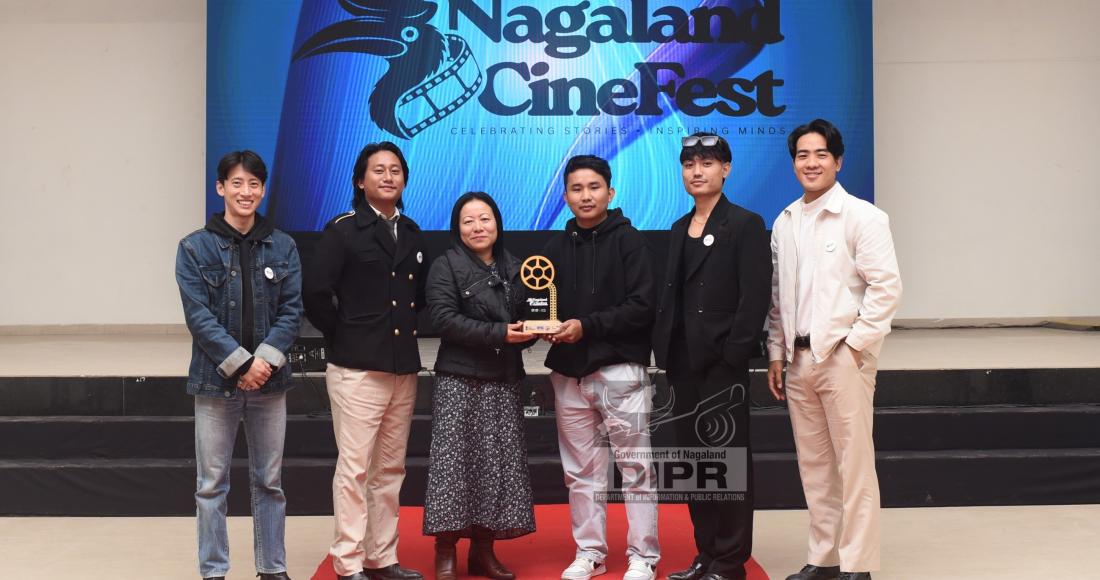 Director of “Bloody Heist’, Itoka Achumi (a BingeBoxx Production) and his team with Jt. Director IPR, Asangla Imsong at the Nagaland CineFest at Bamboo Hall, Naga Heritage Village, Kisama on 7th December 2025.