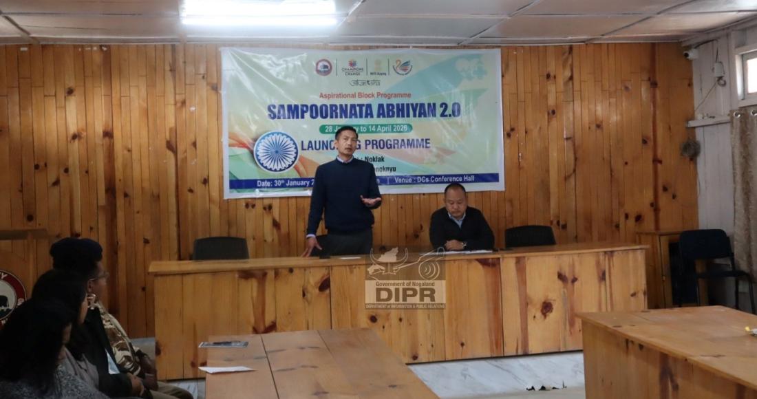DC Noklak, P. Mono Khiamniungan addressing during the Aspirational Block Programme, Sampoornata Abhiyan 2.0 held at DC's Conference Hall, Noklak on 30th January 2026.