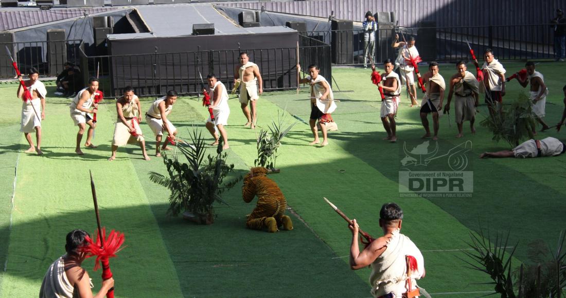 The Zeliang troupe performed Chakhiu Lui, a song traditionally sung while seeking alms. The Khiamniungan troupe staged Shiekou, a war dance demonstrating shield-based combat techniques.