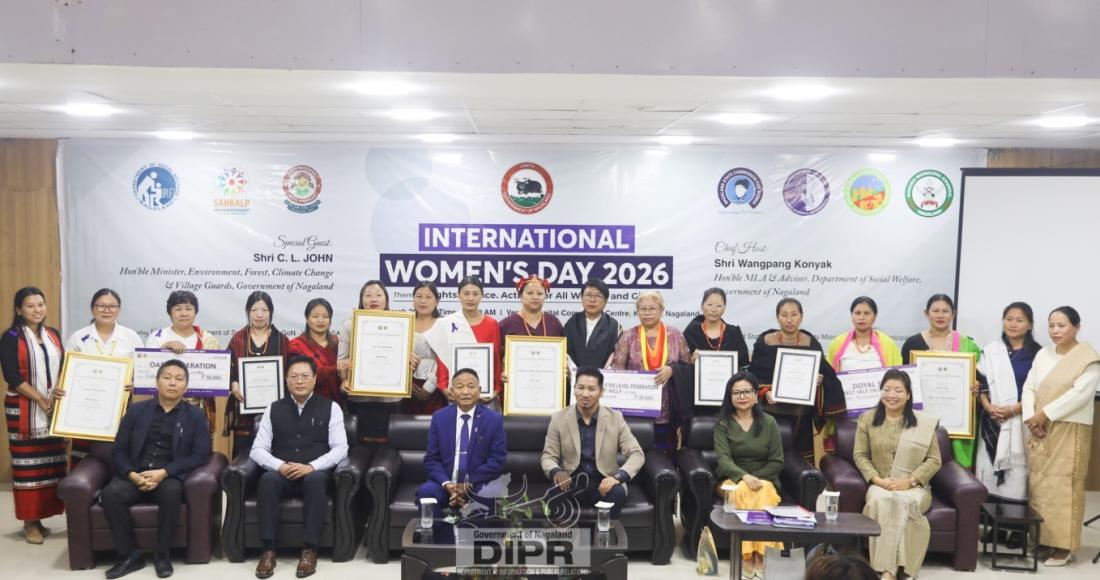 International Women’s Day 2026 was observed at the Capital Convention Centre, Kohima on 7th March 2026 under the theme “Rights. Justice. Action. For All Women and Girls.” The event was graced by MLA & Advisor, Department of Social Welfare, Wangpang Konyak as the chief host, while Minister for Environment, Forest, Climate Change and Village Guards, C. L. John attended as the special guest. The programme began with an invocation by Rev. Izieteilung Tering, State Chaplain, followed by a welcome address delivered by Director, Women Resource Development, Vilone Sakhrie.