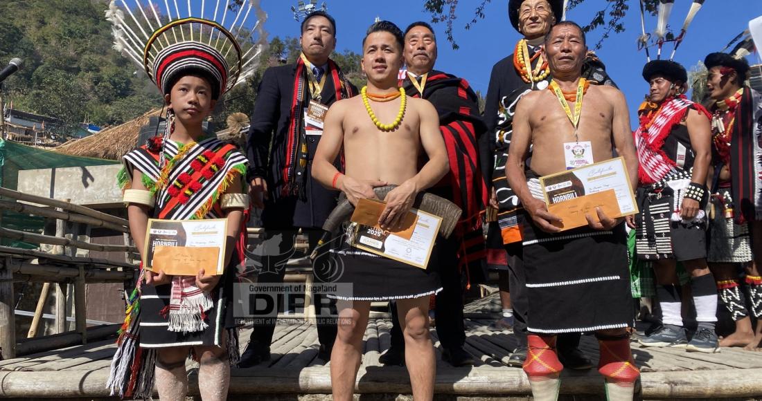 In the ‘Blowing of Horn’ competition which was held at Sumi Morung, Lhuvepra Veryo from Chakhesang tribe, Vizoseito Vüpru from Angami tribe and Ketwapeusing Haikam (13 years of age) from Zeliang tribe, the youngest contestant among the 16 participants bagged the first, second and third position respectively.