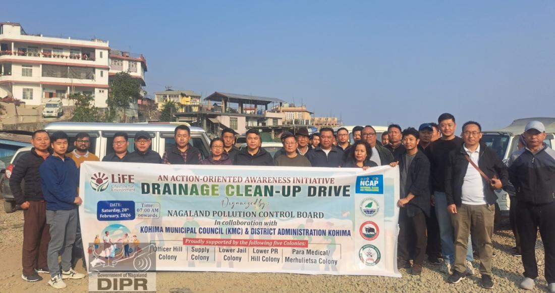 In an effort to ensure a cleaner and healthier environment, the Nagaland Pollution Control Board, in collaboration with the Kohima District Administration, the Kohima Municipal Council, concerned ward councillors, and colony authorities, organised a Mass Drainage Cleanliness Drive along the Seicierü River and its upper tributaries on 28th February, 2026.