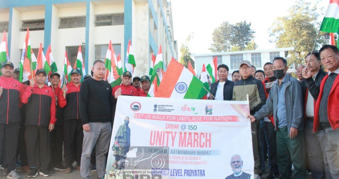 A significant district level Padyatra was successfully held at the Town Hall, Mokokchung on 25th November 2025, underscoring the community’s commitment to national unity and integrity. The event was organized jointly by the Ministry of Youth Affairs and Sports, GOI and the Mokokchung District Administration to commemorate the 150th birth anniversary of Sardar Vallabhai Patel, the ‘’Iron Man of India.’’