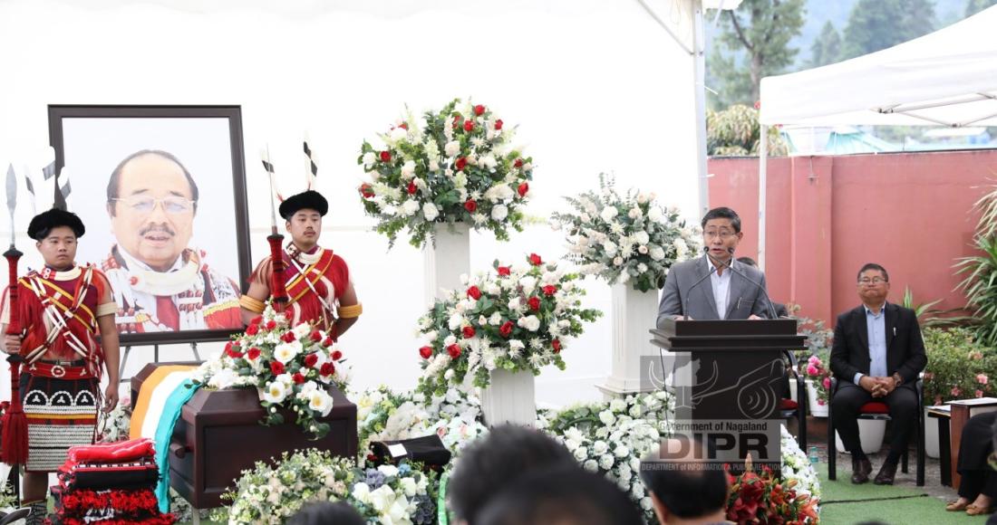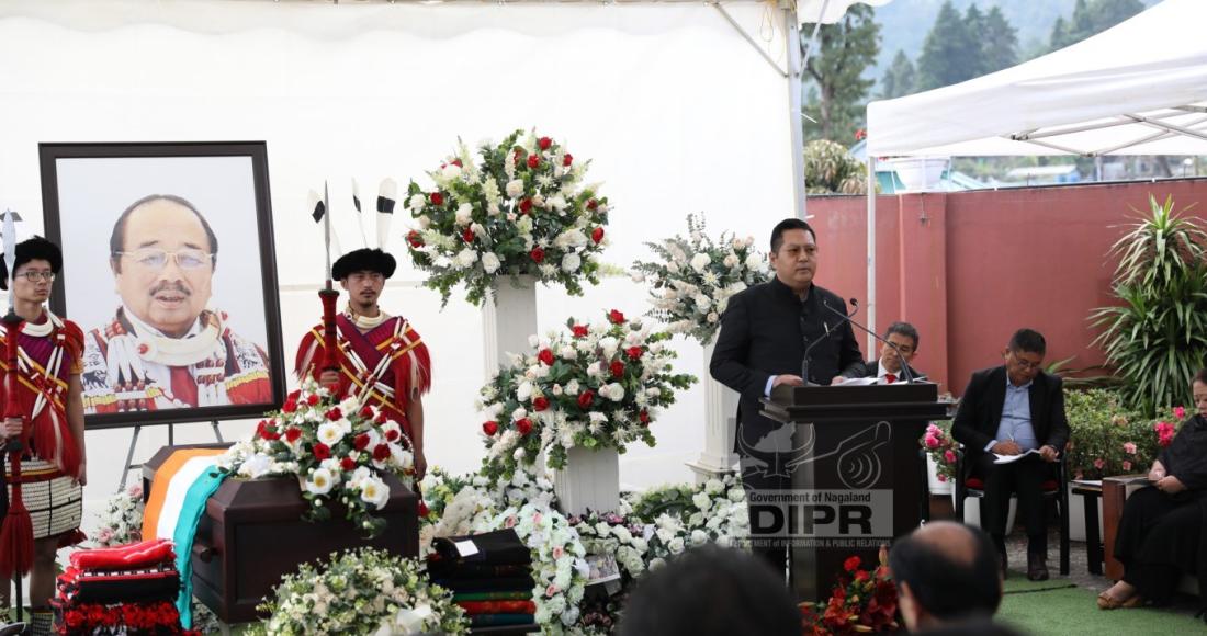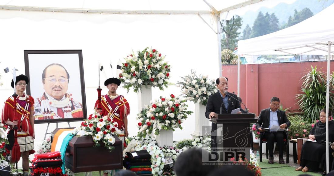 Earlier during the program, Orenthung Lotha, Commissioner & Secretary, IPR and Cooperation was the chairperson of the State Funeral program. Invocation was pronounced by Temjen Sempo, Pastor, Kohima Ao Baptist Arogo. Representative from Mangmentong Senso Telongjen Kohima also shared words of remembrance for the late leader. President Kohima Ao Telongjem, T. Chubayanger also spoke on behalf of the Ao community residing in Kohima.