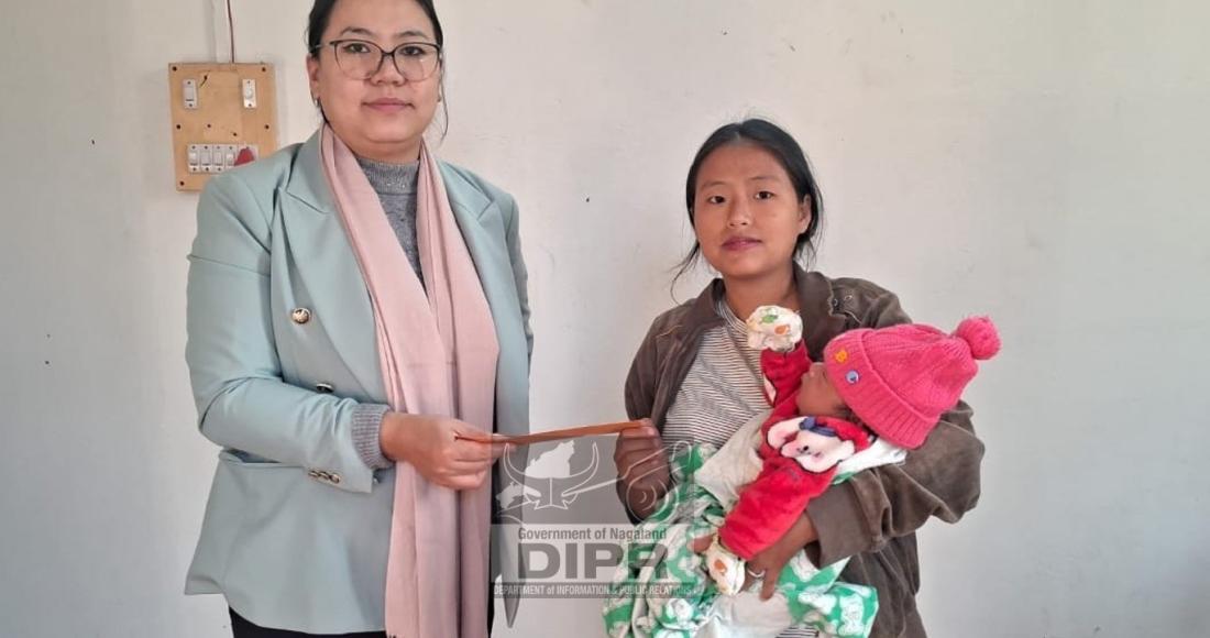 Under the initiative of the District Administration of Niuland to encourage institutional deliveries, Kelengunuo Solo, EAC Niuland giving away Rs.5000 to Vitoni of Ghotovi village for delivering a baby boy at CHC, Niuland on 9th January 2026.