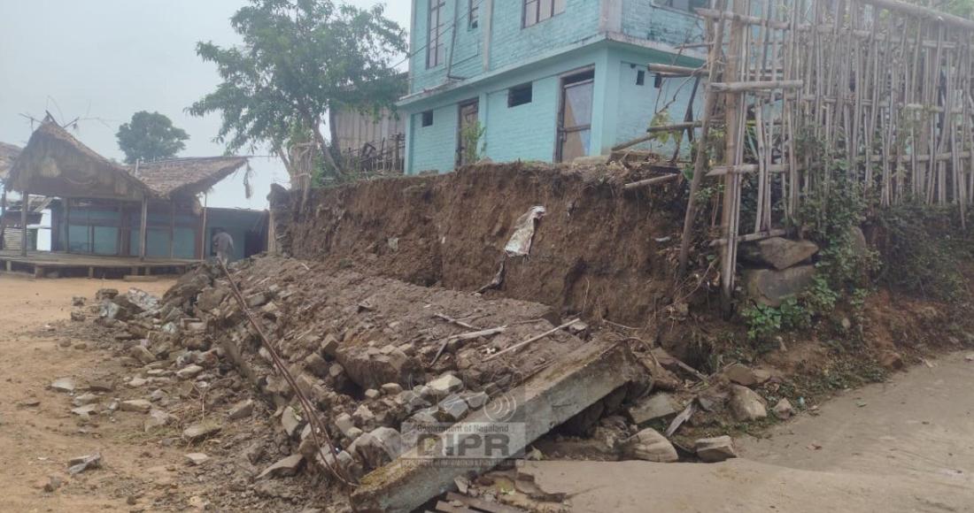 A retaining wall collapsed after heavy rain and storm at Longleng on 13th March 2026.