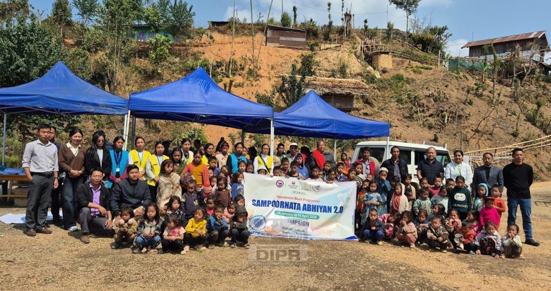 Young Professional (Land & Water Resources) Niti Aayog, Shipra Singh with district officials during the Sampoornata Abhiyan 2.0 Campaign under Aspirational Block Programme held at Sanglao Village, Thonoknyu Sub-division, Noklak on 4th March 2026.