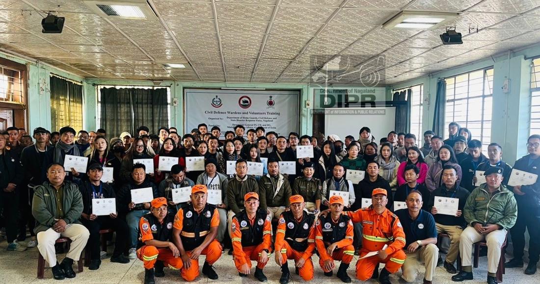 Addressing the gathering, District Commandant Wopenthung Kikon lauded the trainees for their dedication and stated that the second phase of the training had further enhanced community capacity in areas such as first aid, evacuation, search and rescue operations, fire safety and coordination with emergency response agencies. He urged the wardens and volunteers to act as responsible first responders in their respective wards, share the knowledge gained with community members and actively participate in future drills to ensure sustained preparedness.