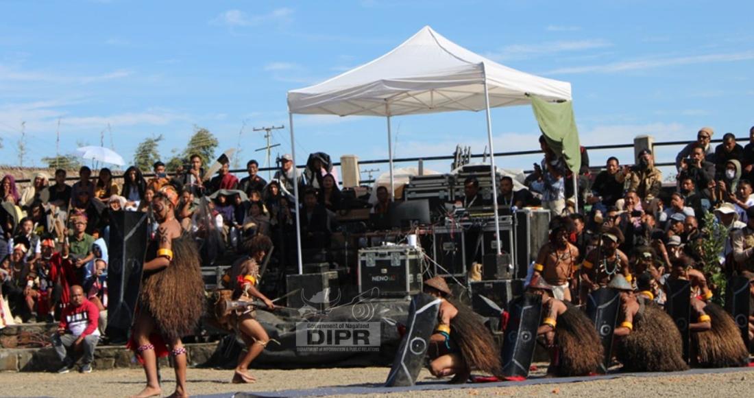 Wancho Fusion Crew from Arunachal Pradesh presenting a traditional dance during the International Hornbill Festival Mon Edition 2025 held at Konyak Heritage Complex, Mon on 8th December 2025.