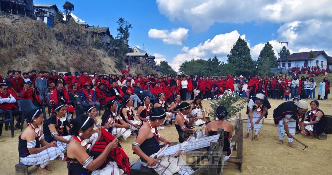 Yimkhiung women enacting traditional weaving and sowing practices during the Tsungkamnyo Festival (Mini-Hornbill Extension) held at Sangphur Village, Shamator on 15th January 2026. (IA Shamator)