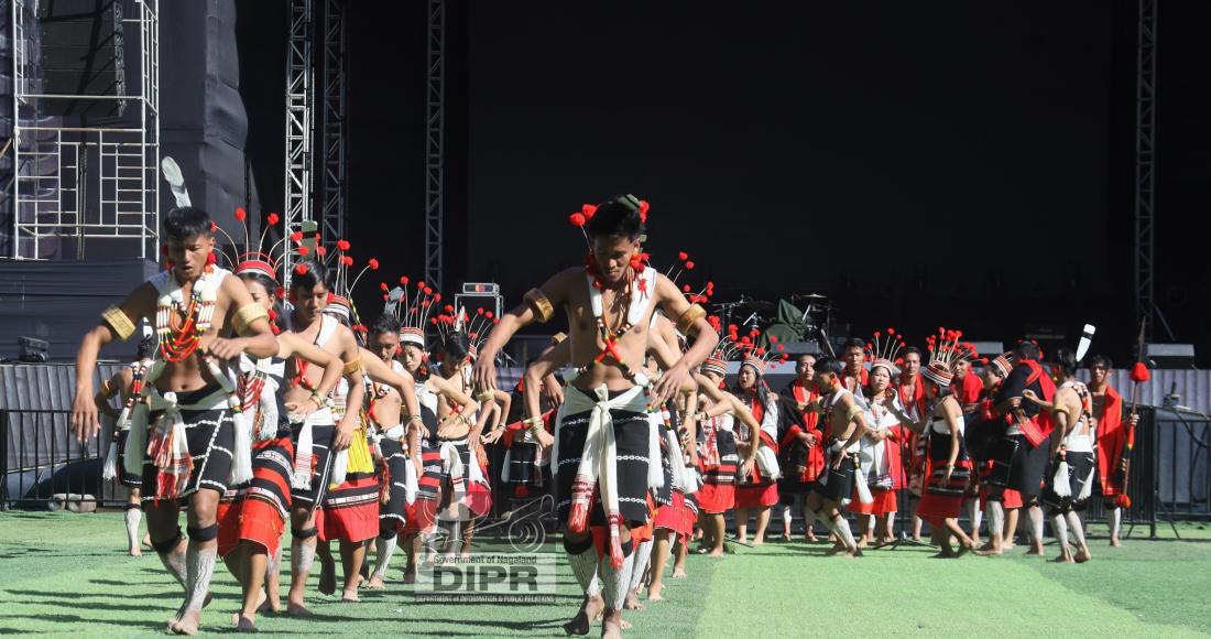 Zeliang Cultural Troupe performing folk dance Akhin tung-bu lin on the 4th Day of Hornbill Festival at Naga Heritage Village, Kisama, Kohima on 4th December 2025.
