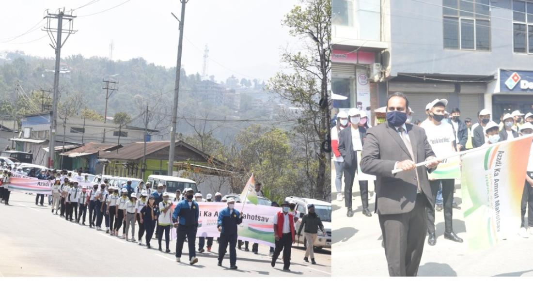 Principal Secretary, Home, Abhijit Sinha flagging off the march commemorating the launching of the celebration of 75 years of India's Independence on 12th March 2021 at High School Junction, Kohima.