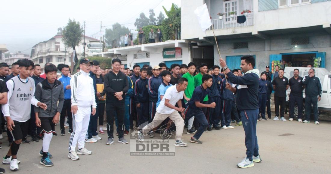 DC Mokokchung, Ajit Kumar Verma, flagging off the unity march "Sardar@150 Ek Bharat, Aatmanirbhar Bharat at Ongpangkong BOC, Mokokchung on 31st October 2025. (DPRO Mokokchung)