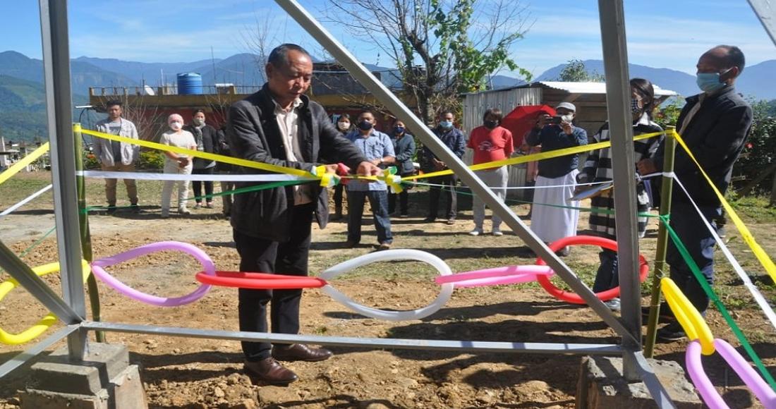 Retd. Joint Director, Department of Education, Earnest Sephe inaugurating the newly installed Announcement Tower at Peren Town on 24th November, 2020.