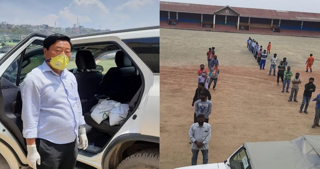 Angami Public Organisation (APO) assisting in distribution of relief materials at Relief Distribution Center Local ground Kohima on 11th April 2020. Newspaper hawkers in queue to collect relief materials.
