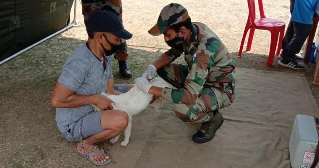 Delta Company 23rd Assam Rifles Mokokchung Battalion, as part of its civic action programme 2021, organize veterinary camp at Longleng in collaboration with Animal Husbandry & Veterinary Services Longleng on 22nd April 2021, at public ground Longleng. A total of 2882 livestock and pats were examined and vaccinated, free veterinary medicine were also provided.