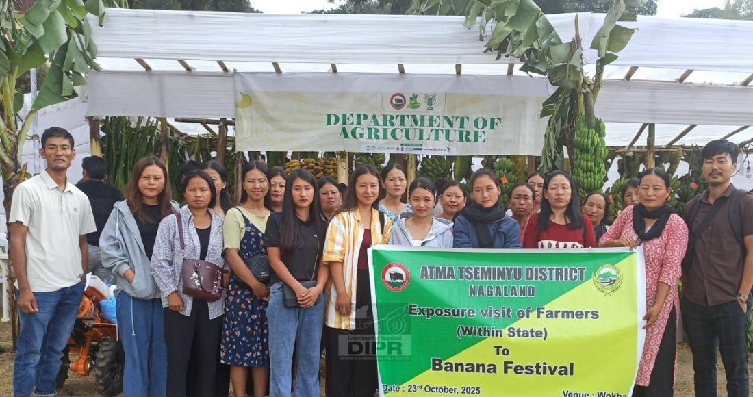 A team of 19 farmers from ATMA Tseminyu district accompanied by one ATMA official visited the ‘Banana Festival’ at Wokha district as part of farmers exposure visit on the 23rd Oct, 2025. The exposure visit was organised by the ATMA Tseminyu.