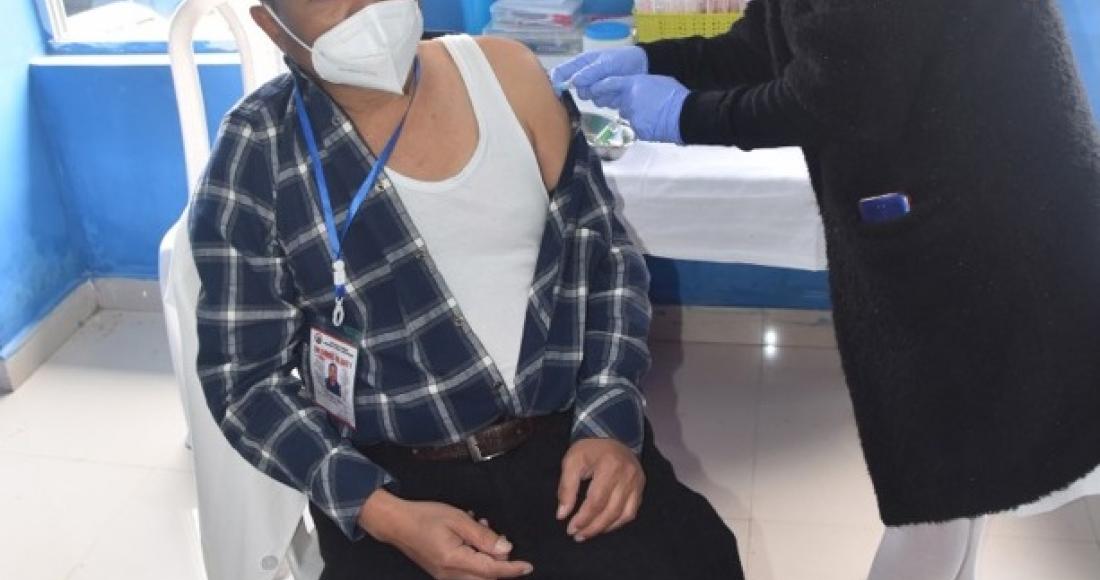 One of the beneficiaries receiving the Covid-19 vaccine during the inaugural function of the State Level Launching Programme of Covid-19 Vaccination at Naga Hospital Authority Kohima (NHAK) on 16th January 2021. (DIPR)