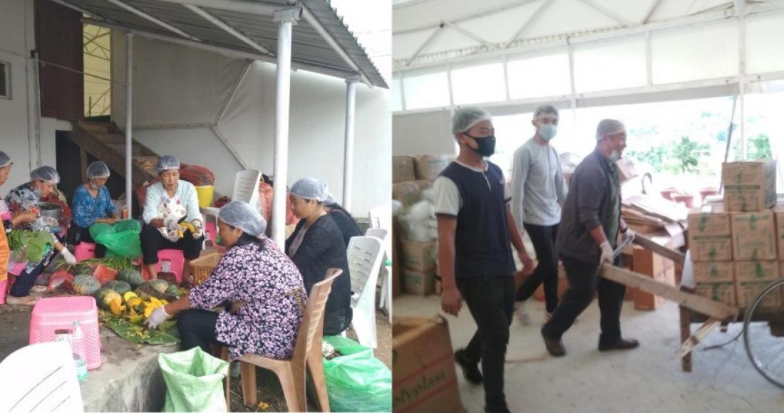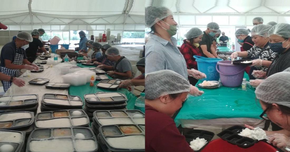 Volunteers from Chakhesang Baptist Church, Ministers Hill, Kohima cooking for the returnees in the Quarantine Centres on 13th June at the Kohima District Task Force Kitchen at NBCC Convention Hall.