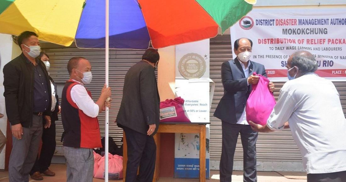 Chief Minister and colleagues distributed relief package (food) to the daily wage earners and labours on 7th May 2020 at Mokokchung.