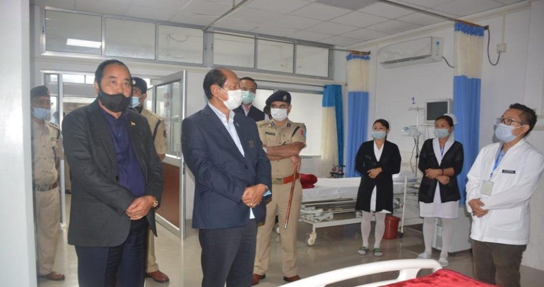 CM Nagaland, Neiphiu Rio, Dy CM, Y. Patton and others inspecting the COVID-19 Hospital Tuensang during their visit to Tuensang Town, on 6th May, 2020.