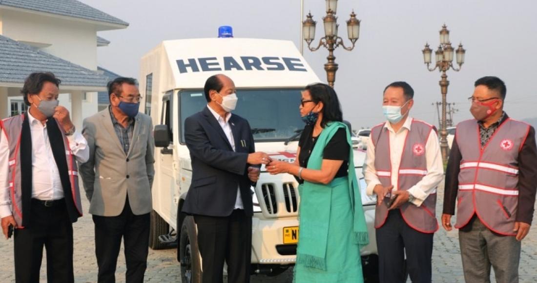 Chief Minister, Neiphiu Rio handed over a Hearse vehicle to the Indian Red Cross Society of Nagaland which was purchased from the Chief Minister's Relief Fund at Chief Minister's Residential Complex on 7th of April 2021.