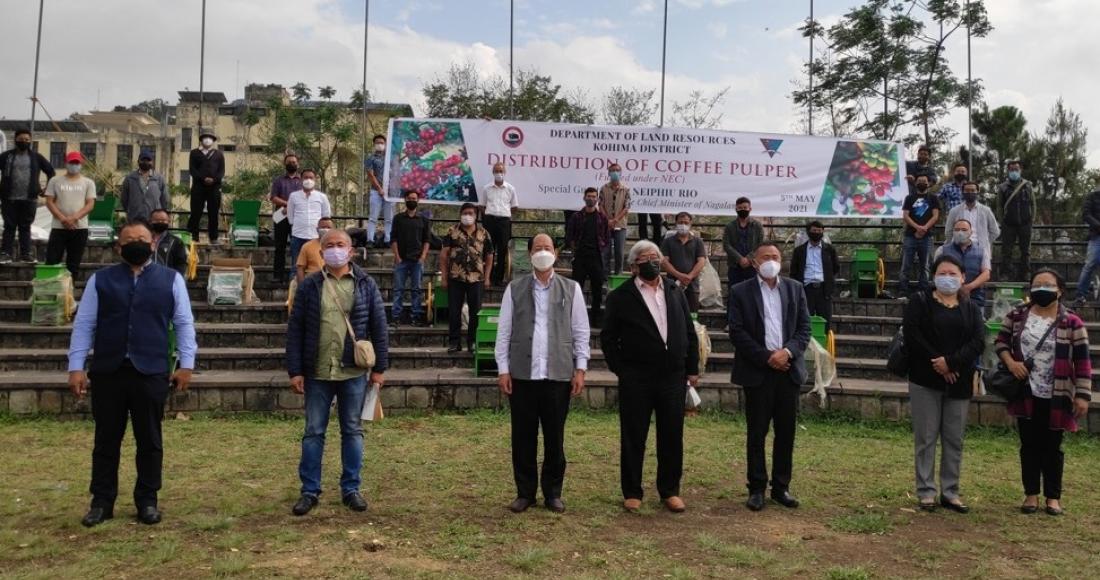 A programme funded by NEC and organised by Land Resources Department, Nagaland, for distribution of coffee pulpers for coffee growers of Kohima district was held at Solidarity Park, Kohima, on 5th May 2021. The Department distributed coffee pulpers to 50 beneficiaries.