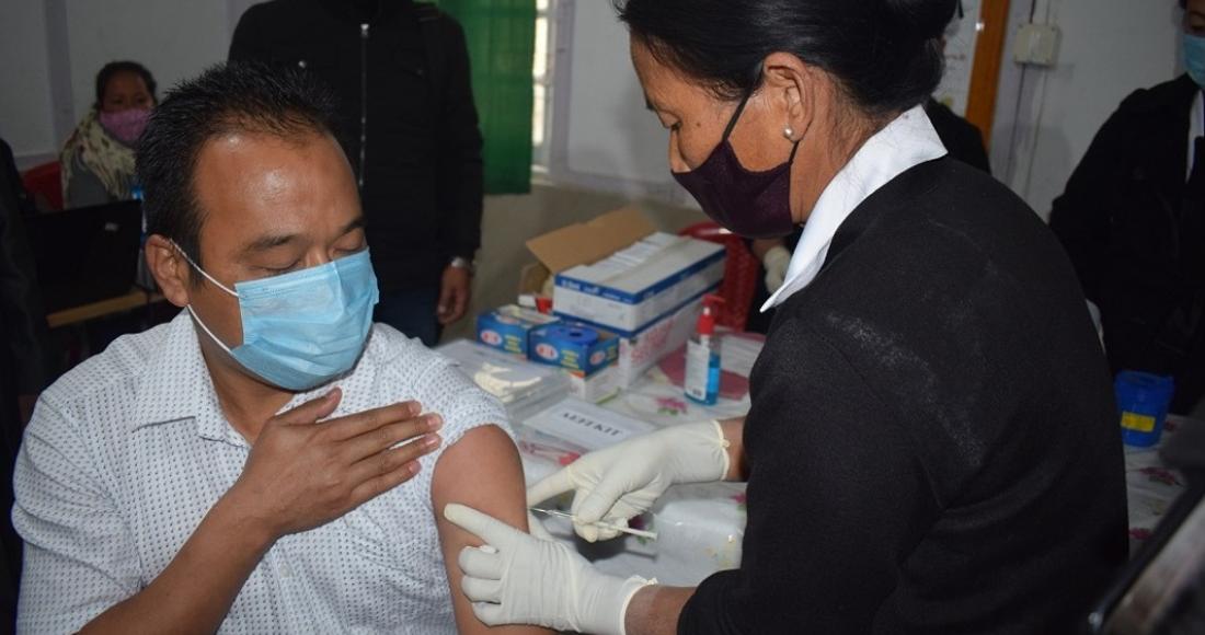 Dr. Wobemo Yanthan being administered with COVID-19 Vaccine during the launching programmed held at district hospital on 16th January 2021. (DPRO Wokha)