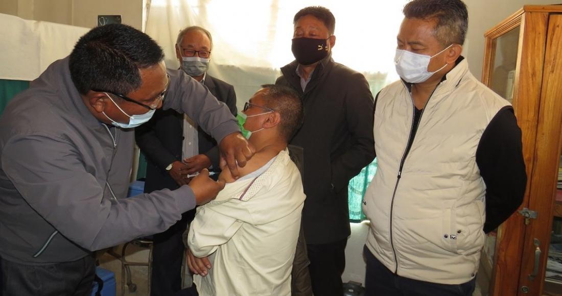 SMO Dr Nosezol Sezo launched the vaccination drive at Community Health Center Medziphema on 18th January 2021 in the presence of ADC Thuvisie Phoji, SDO (C) Tokai Sumi, HCMC Chairman, Rev Terhujah and Government officials and health workers.