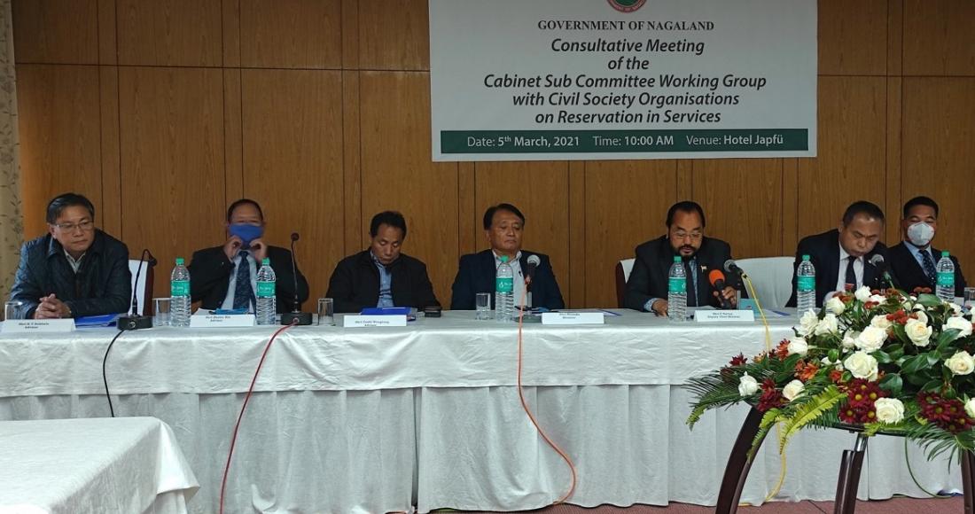The Consultative meeting of the Cabinet Sub-Committee Working Group with Civil Society Organizations on Reservation in Government Services was held at Hotel Japfü, Kohima on 5th March 2021.