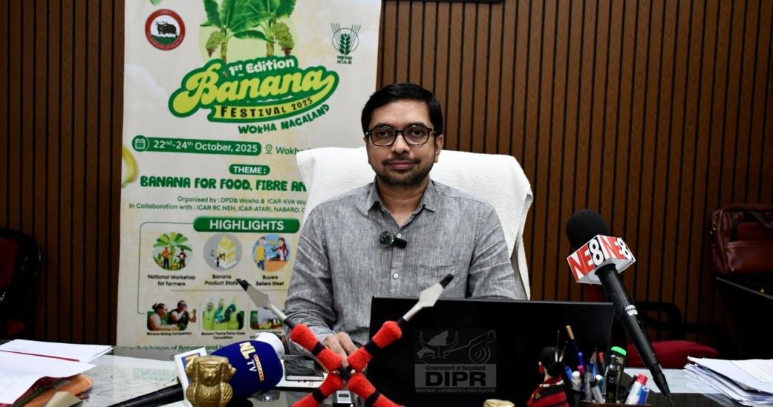 Deputy Commissioner Wokha, Vineet Kumar, IAS held a press conference at the DC Office, Wokha, on 18th Oct. 2025 to share updates on the upcoming 1st Banana Festival 2025, scheduled to take place from October 22 to 24 at the Public Ground, Wokha.