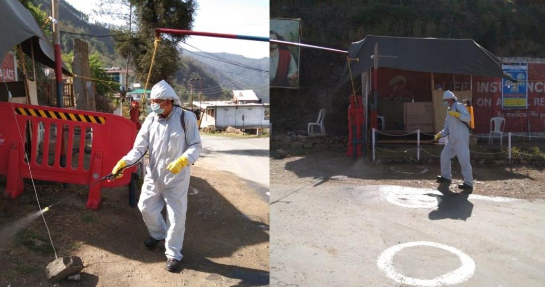 A disinfection drive was done by the Pfutsero Administration on 11th April 2020 at Pfutsero Town entry point, Vehicles entering the check gate were also sprayed with the disinfectant.