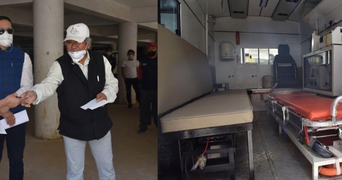 Advisor for Urban Development and Municipal Affairs, Dr N. Nicky Kire handing over the keys of two Smart Ambulances to Naga Hospital Authority, Kohima for emergency COVID-19 operation at the KMC/KSCDL Office Complex Kohima on 30th March 2020. (DIPR)