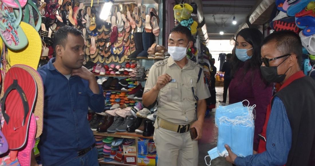 To oversee the enforcement of COVID-19 protocols in the State Capital, especially the mandatory wearing of masks in public places, the District Task Force Kohima on COVID-19 conducted a surprise checking and awareness drive in the capital’s streets and shops at several locations on 5th April 2021. Many violators were penalized as per the guidelines while masks were also distributed to the people.
