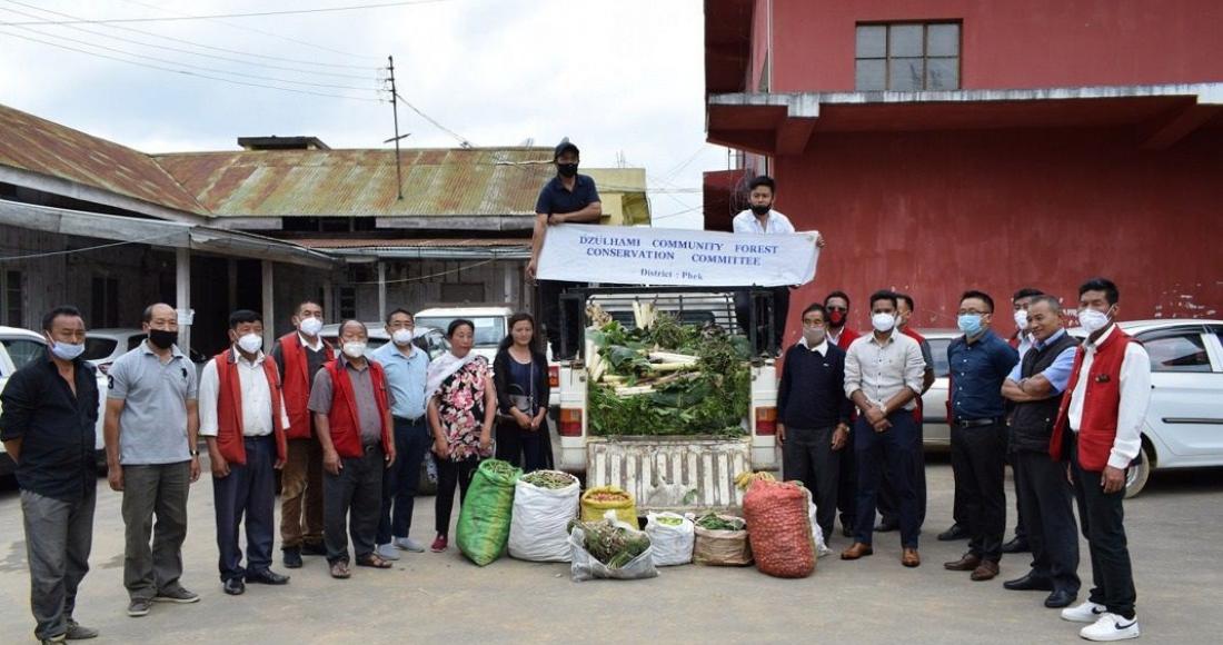 Dzulhami Community Conservation Area donated one load of wild & cultivated vegetables, rice, fruit, snails etc to the Phek District Task Force on 5th June 2020 coinciding with the World Environment Day. The donation was handed over to Sachin Jaiswal, IAS, Deputy Commissioner Phek in the presence of Administrative officers and Dobashis.