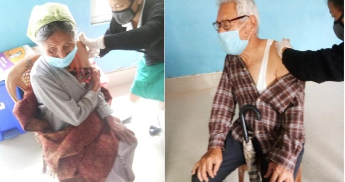 Elderly people taking the COVID-19 vaccination at Kohima. A total of 1482 (1st dose-1275 and 2nd dose-207) were vaccinated on 18th April 2021. (DPRO Kohima)