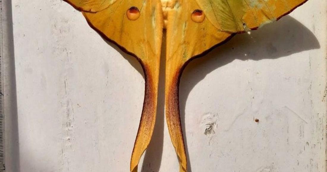 Madagascan moon moth is one of the beautiful lepidopterans. It is nocturnal and not flying at day time. Male and female can be easily distinguished; females have broader and rounder wings and much shorter tail and males wear long and plumose ones.