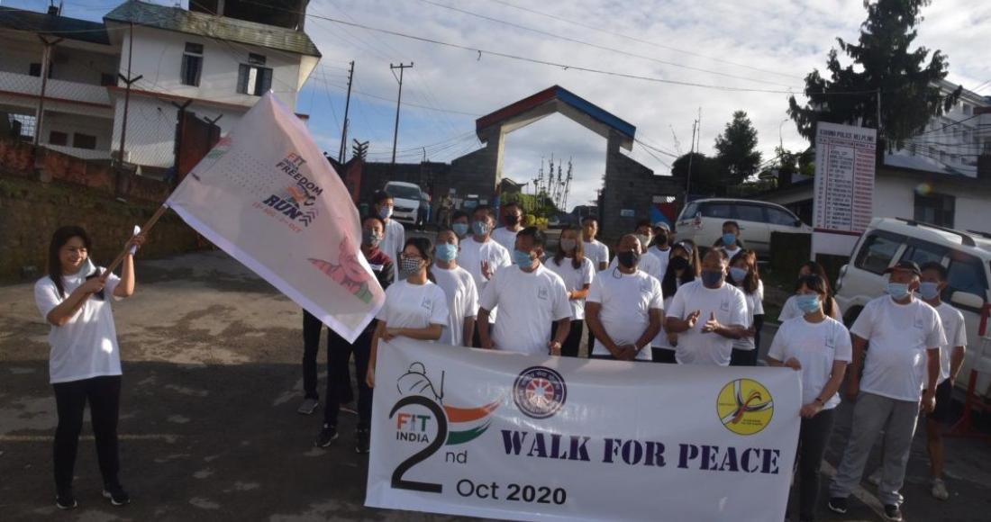 Celebrating the 150th Birth Anniversary of Mahatma Gandhi, the Fit India Walk for Peace was flagged off from the PHQ Junction P.R. Hill Kohima by the Director of Youth Resources and Sports, Akumla Chuba on 2nd October 2020.