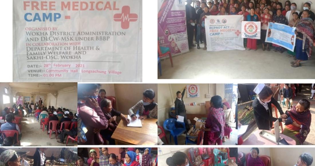 The District Administration and DLCW –MSK under Beti Bachao Beti Padhao (BBBP) in collaboration with the department of Health and Family Welfare, Sakhi- One Stop Centre organised a one day awareness programme on PCPNDT Act (pre conception and pre Natal Diagnostic Technique Act) and PMMVY (Pradhan Mantru Vandana Yojana- Maternity Benefit Scheme) and Free Medical Camp on 28th February, 2021 at Longsachung Village Community Hall.