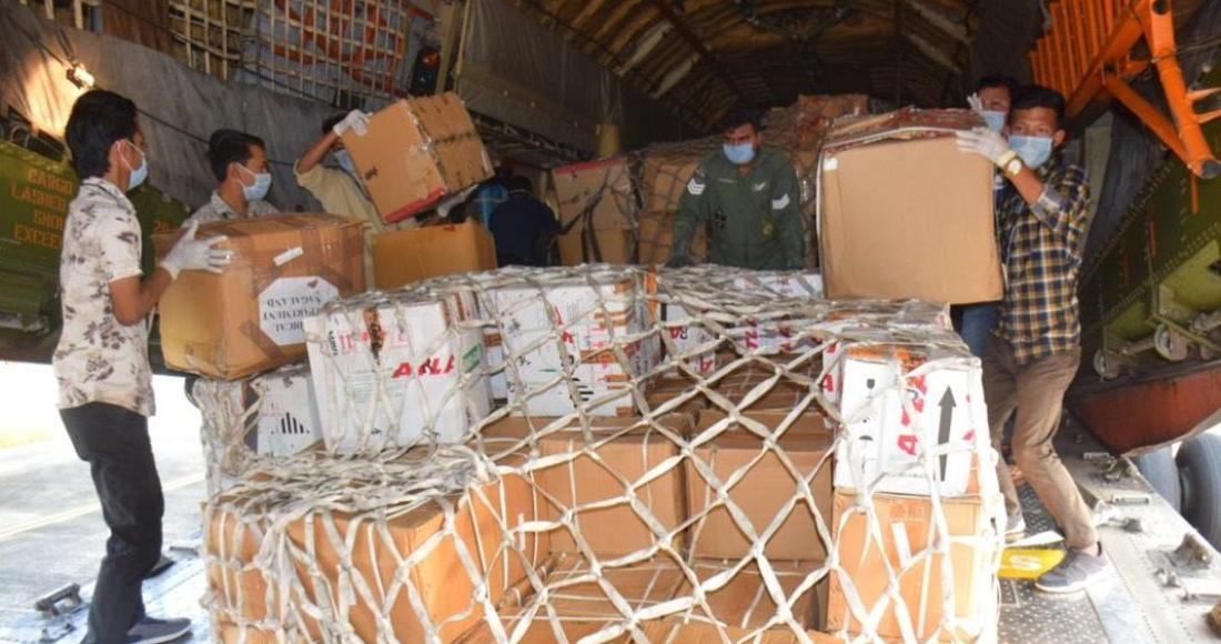 Indian Air Force Aircraft IL-76 MD airdropped 5 tonnes of medical load for Nagaland State Health & Family Welfare and NSDMA at Dimapur Airport on 4th April 2020.