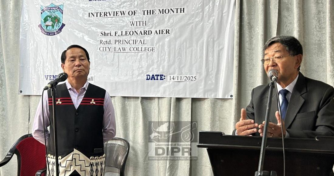 Eden Higher Secondary School, Dimapur, conducted its fourth edition of the Interview of the Month programme on 14th November 2025 at the School Chapel Hall. The interview featured P. Leonard Aier, LLM, the first Naga Pilot Officer of the Indian Air Force and retired Principal of City Law College, Dimapur. The session was moderated by Dr. M. L. Ngullie, Chairman of the School Management Board. More than two hundred students and teachers attended the interactive event.