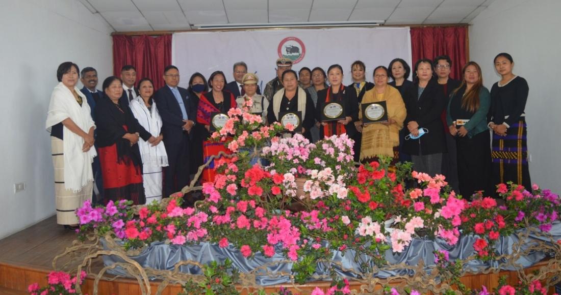 Recipients of the NSCW Award 2021 with Chief Secretary, J. Alam IAS, DGP, John Longkumer IPS and senior government officials on the occasion of International Women's Day 2021at Hotel Vivor, Kohima on 8th March 2021.