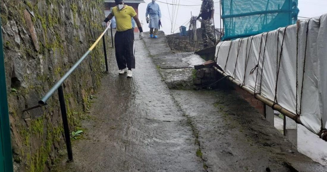 Jawans of DIG ops Kohima CRPF u/c second in command, P.K. Mishra carried out disinfection process of quarantine centre in Lerie, Kohima on 28th July, 2020.