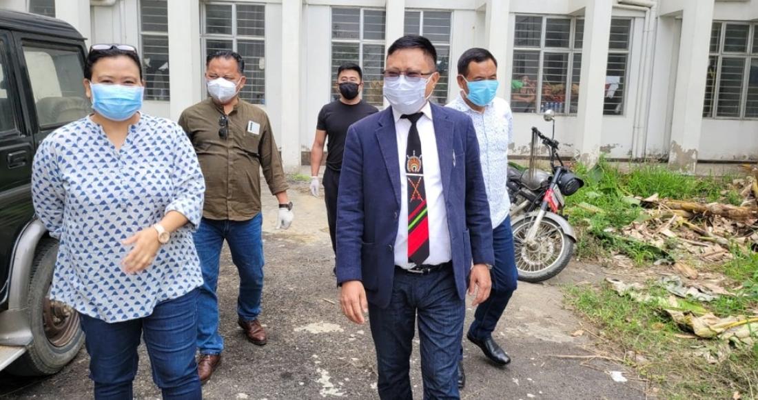 Y.Kikheto Sema accompanied by CP, Dimapur, ADC and Dy CMO Dimapur during the visit to Covid Care Center New DC's complex, Chumukedima on 17th May 2021.